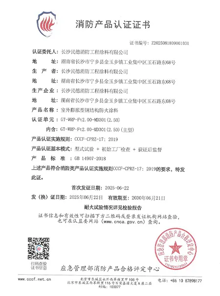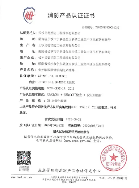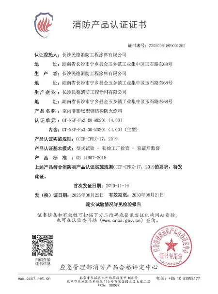 ООО «Чанша Миньдэ Огнезащитные Инженерные Краски» было основано в 2005 году и является высокотехнологичным предприятием, имеющим национальную сертификацию и объединяющим производство, продажи и строительство. Обладая 20-летним опытом работы в отрасли, компания располагает заводом площадью 20 000 квадратных метров и годовой производственной мощностью 8 000 тонн. Компания имеет мощную команду, укомплектованную не только профессиональными техническими специалистами и современным испытательным оборудованием, но и привлекает отраслевых экспертов в качестве технических консультантов.